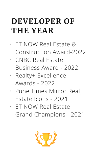 VTP Realty is Pune’s #1 Real Estate Development Brand. The undisputed leaders that have not only set new benchmarks in business numbers but with stellar delivery line-up. Ranked 5th* in India in terms of number of units sold, VTP Realty is a well-known skyrocketing success story despite being a single city developer. A brand that stands firmly on strong ethics and projects a trailblazing thought-leadership for the industry. The numerous awards winning brand prides itself in pioneering the MLA (Maximum Livable Area) Homes.