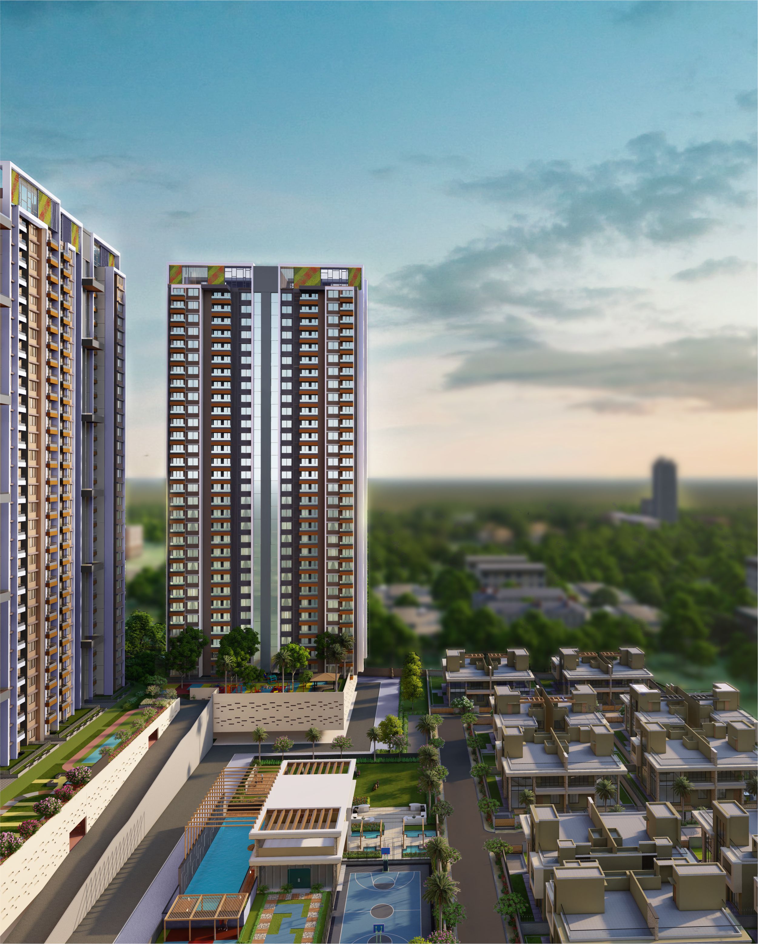 The grand towers will stand tall at the south gate of the township and evoke pure envy for the passerbys with an imposing and classical elevation. We promise love at first sight! With two levels of open space and almost 2.85 acres open podium space dedicated to amenities, love will only grow deeper. Vast open spaces with ample light and ventilation and great distance between towers afford maximum privacy!